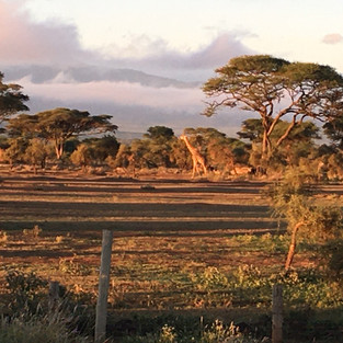Our first game drive with Philip was on Saturday late afternoon so we could catch the animals coming out in the evening sun, and it didn’t disappoint. Just inside the main gate to the park there were about six elephants standing around, and a little further on large groups of impala, wildebeest, buffalo and zebra as well as dik-diks and monkeys. As we drove we encountered more elephant - large family groups on the move across the vast plains with Kilimanjaro rising up in the background. I was already starting to hear David Attenborough’s narration in my head and the whole thing was hard to believe - particularly as we could stand in the van and poke our heads through the hole in the roof to get 360 degree views. There was also fantastic bird life around the wetland areas and even the weather helped by treating us to a double rainbow against leaden skies.